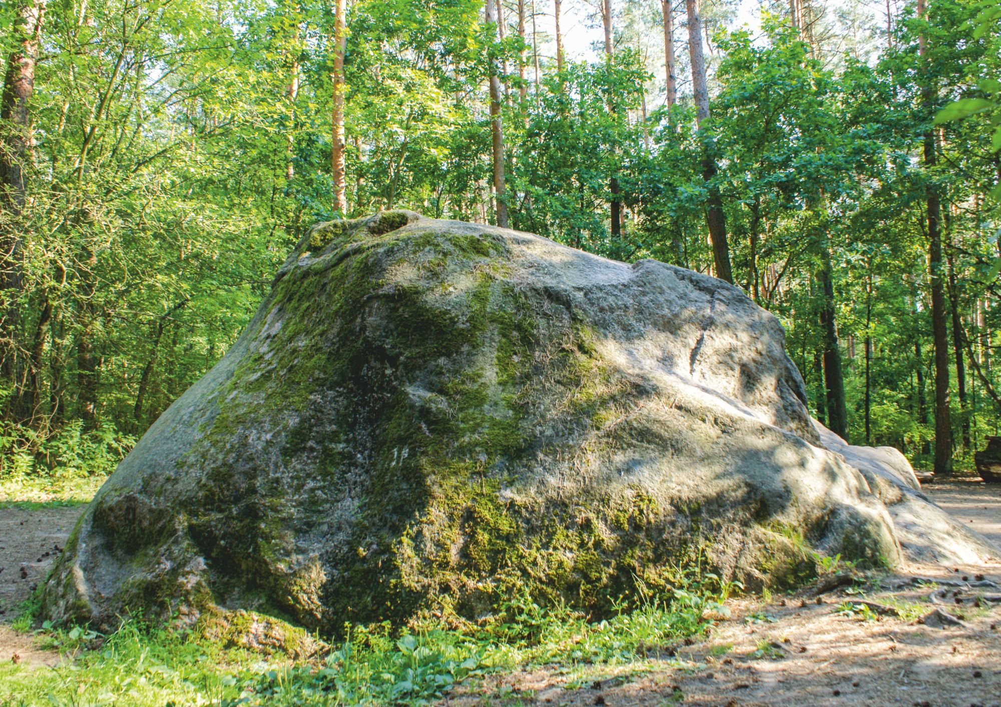 Der Legende nach predigte der heilige Adalbert auf diesem Stein während seiner Wanderung nach Preußen. Eine andere Legende erzählt wiederum die Geschichte eines Teufels, der den Fluss Wda mit einem riesigen Felsbrocken zu teilen beabsichtigte, um den Flussverlauf zu ändern. Überrascht von dem Tagesanbruch ließ er den Stein im Wald liegen – daher sein zweiter Name: „Teufelsstein“. Es ist der drittgrößte Findling in Polen.
