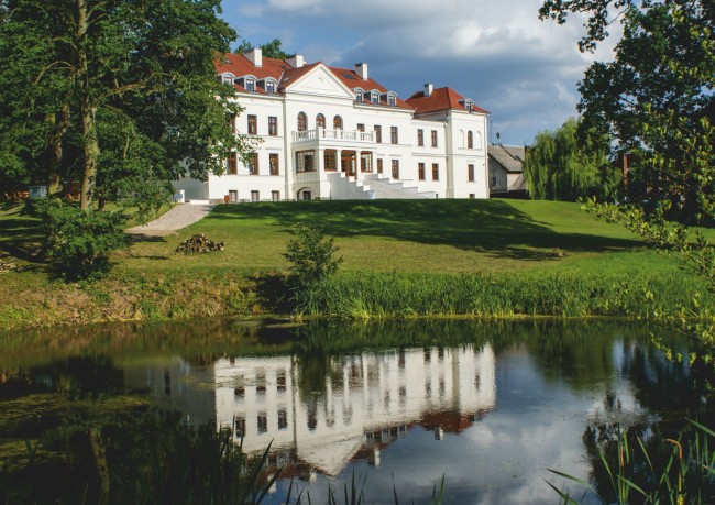 An der Stelle des heutigen Schlosses stand um die Wende des 18. und 19. Jh. ein Herrenhaus der Familie Pawłowski, von dem nach dem Brand nur noch Ruinen erhalten waren. Im Jahr 1829 wurde das Anwesen von einem anderen Besitzer erworben, der bald damit begann, einen klassizistischen Backsteinpalast auf den Fundamenten des verfallenen Herrenhauses zu errichten. Die Anlage beherbergt derzeit ein luxuriöses Hotel mit Wellness- und Spa-Bereich.