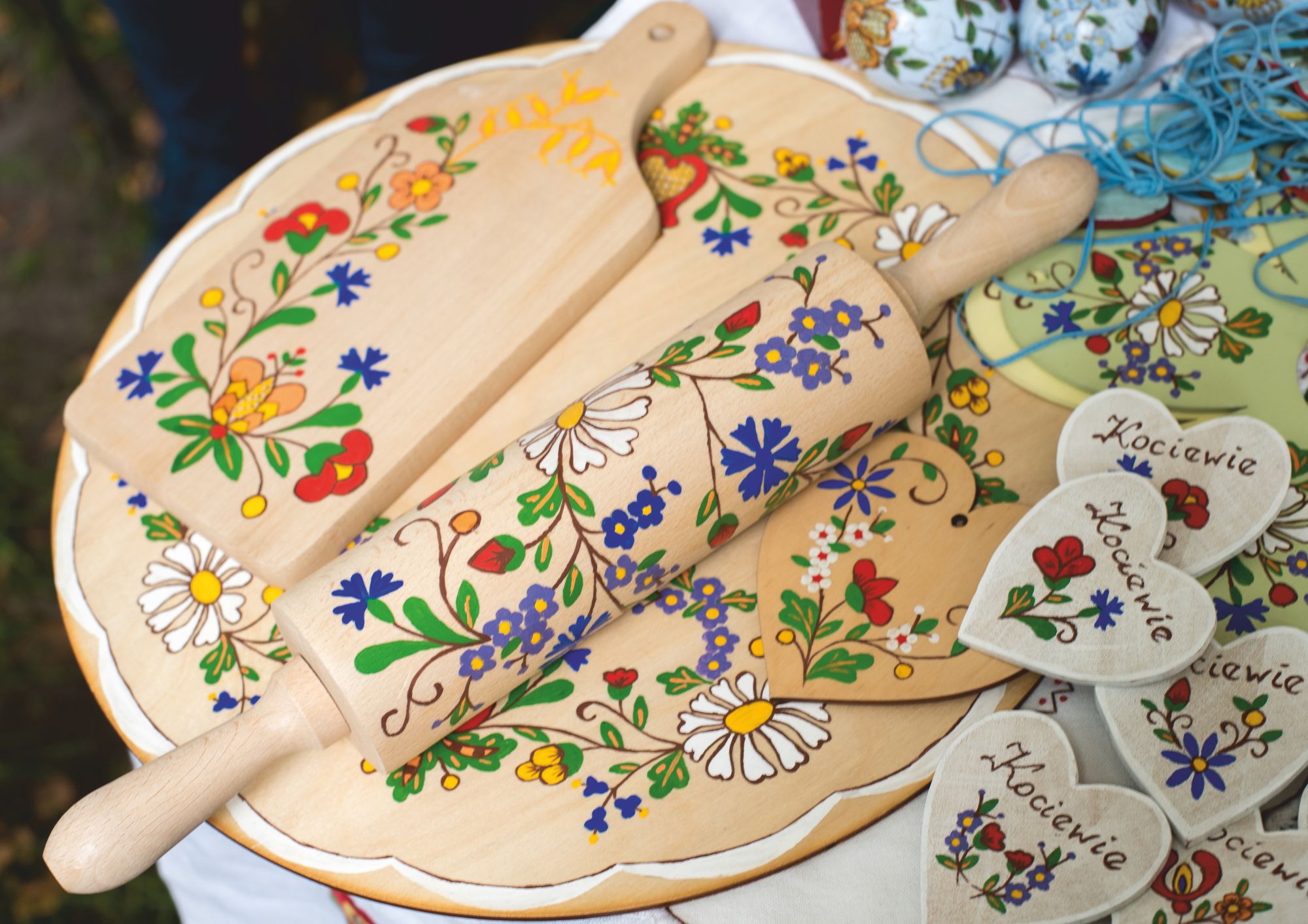 Wunderschön bestickte Tücher, Tischdecken und Servietten, auf denen Weizenähren, Mohn, Disteln oder Kornblumen dargestellt sind, sind wahrscheinlich die schönste und farbenfroheste Visitenkarte von Kociewie. Die Schöpferinnen dieser Motive sind Maria Wespa aus Morzeszczyn und Małgorzata Garnysz aus Pączewo. In den 1970er Jahren führten sie Feldblumen und Ähren auf die Servietten ein. Derzeit werden diese Stickmuster in verschiedenen Formen von lokalen Künstlern verwendet.